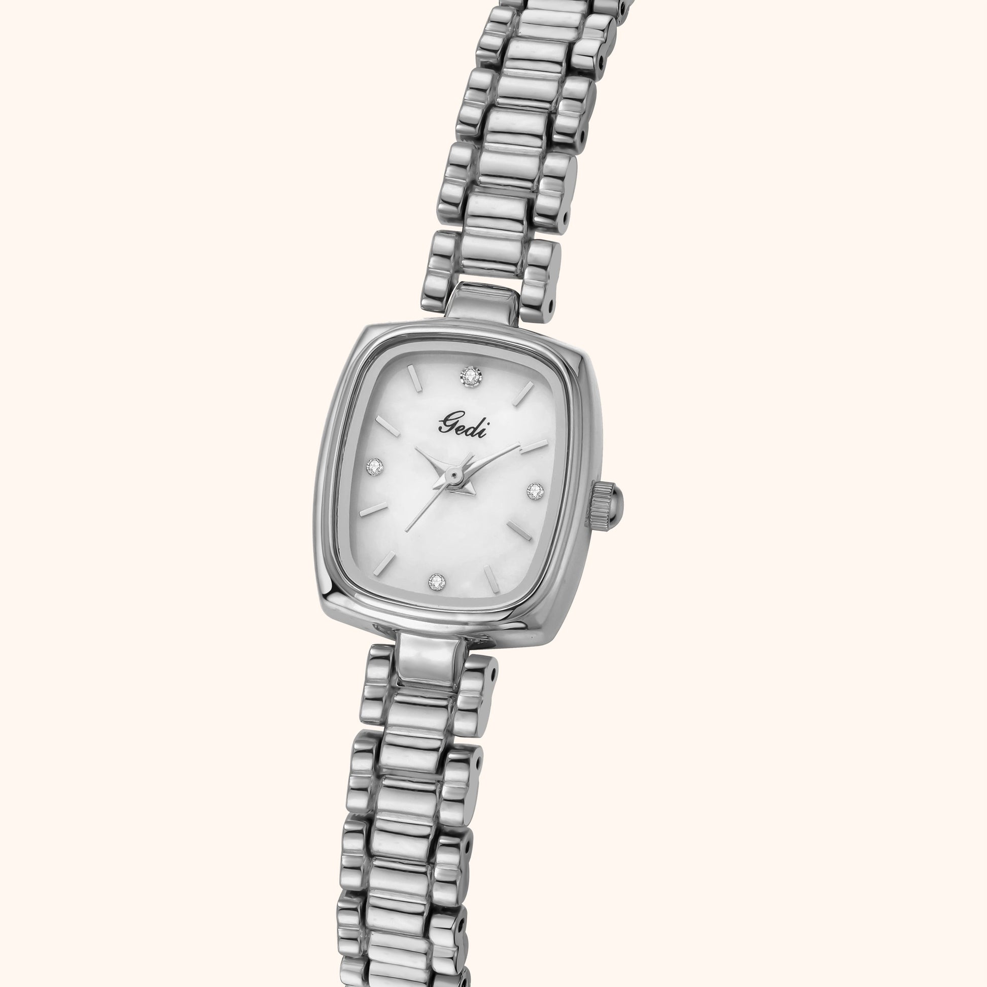 Diese elegante Uhr kombiniert zeitloses Design mit moderner Langlebigkeit. Sie wurde fachmännisch gefertigt, um am weiblichen Handgelenk zu passen, und verfügt über ein 19 x 22 mm Zifferblatt. Die Aurora Uhr bietet die perfekte Mischung aus Stil und Komfort.