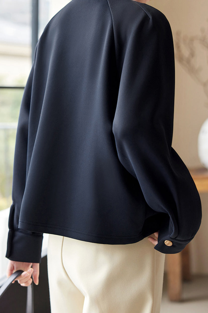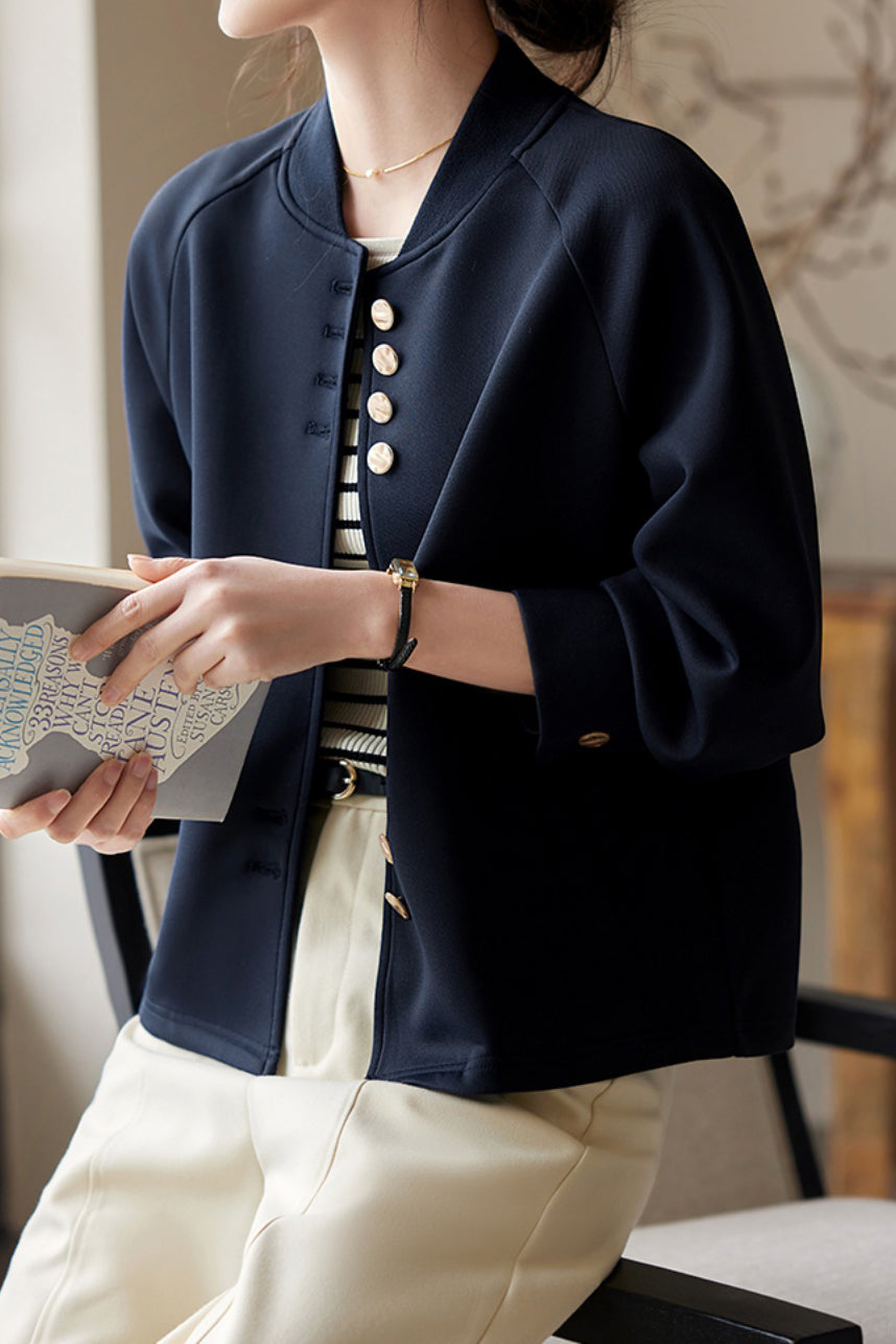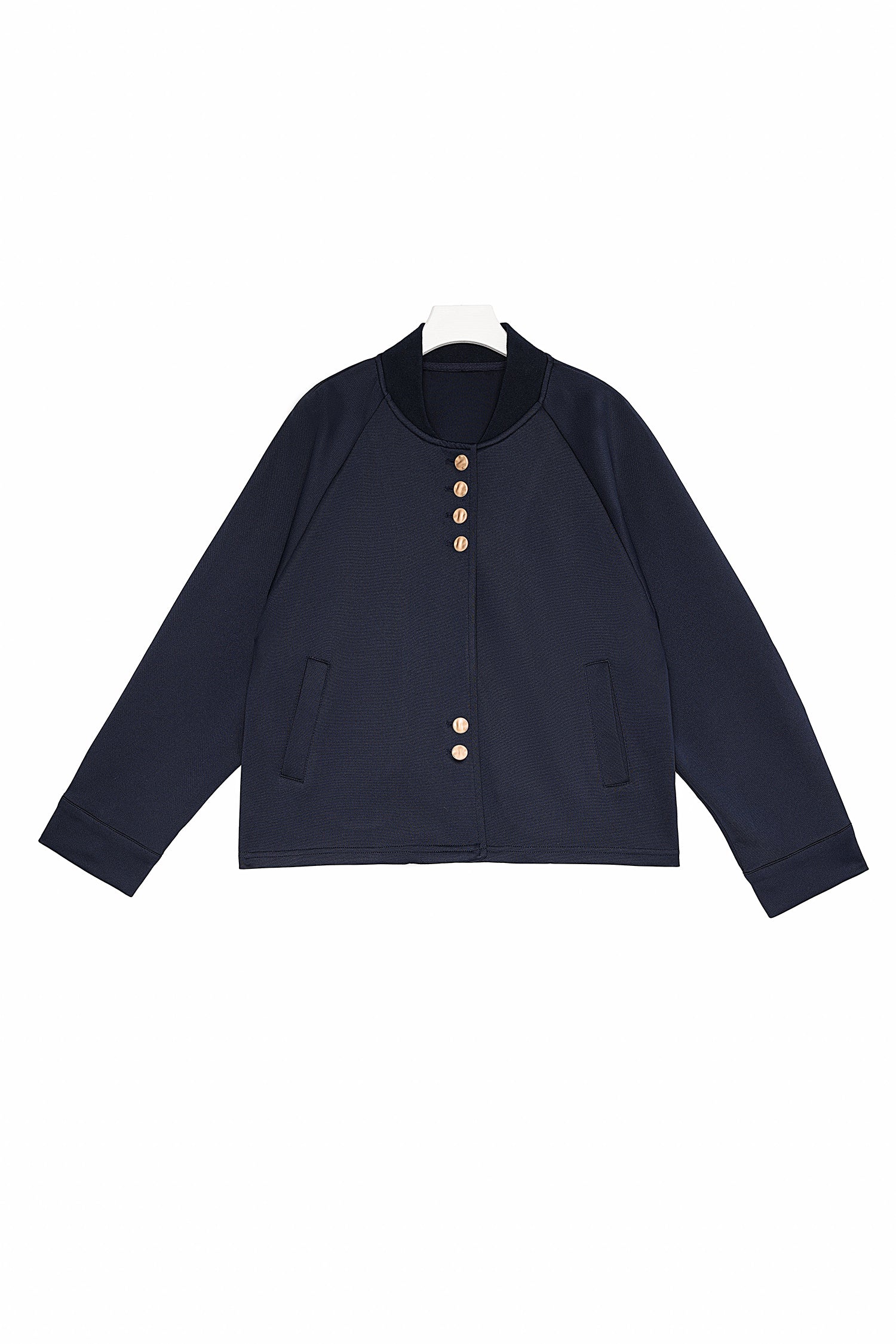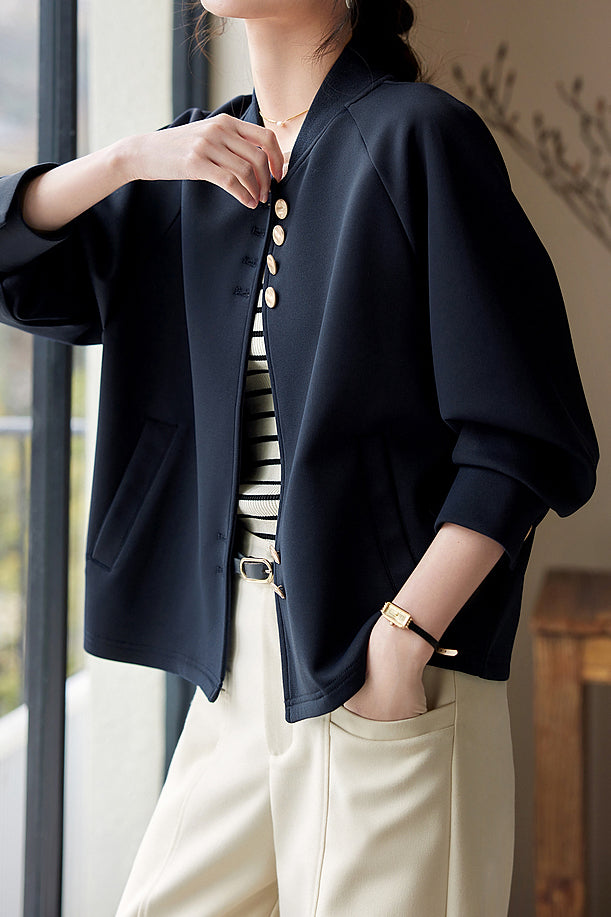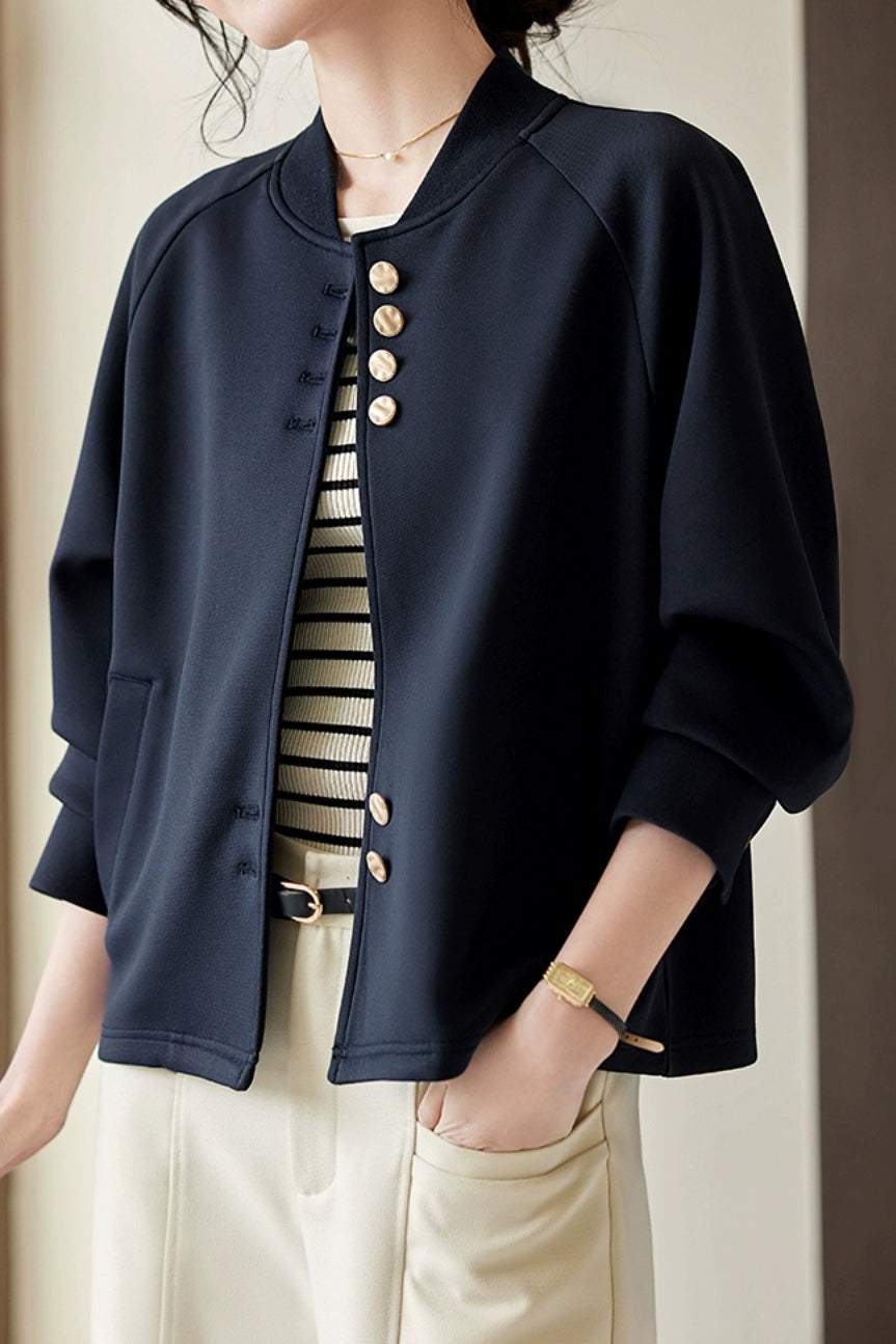 Baseballkragen, vorderer Knopfverschluss, Seitentaschen in der Taille, Raglanärmel, Knöpfe an den Manschetten, lange Ärmel, einfarbig |