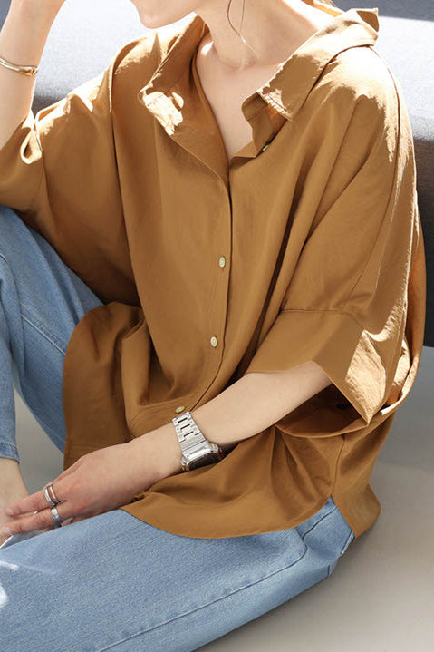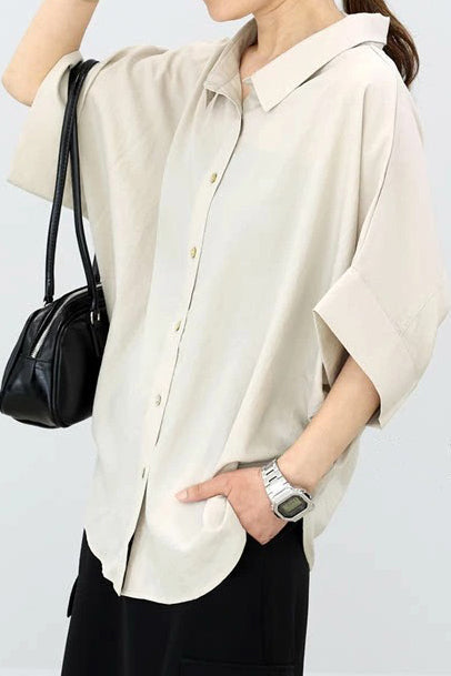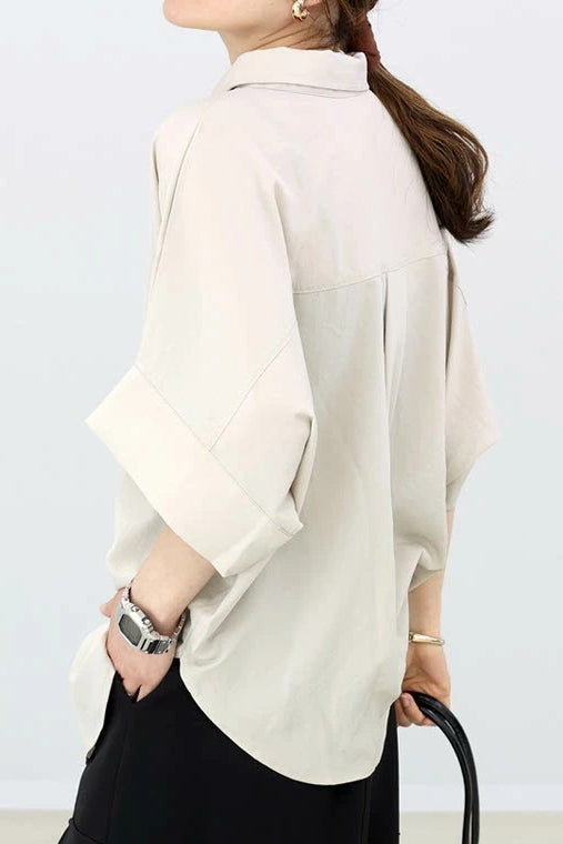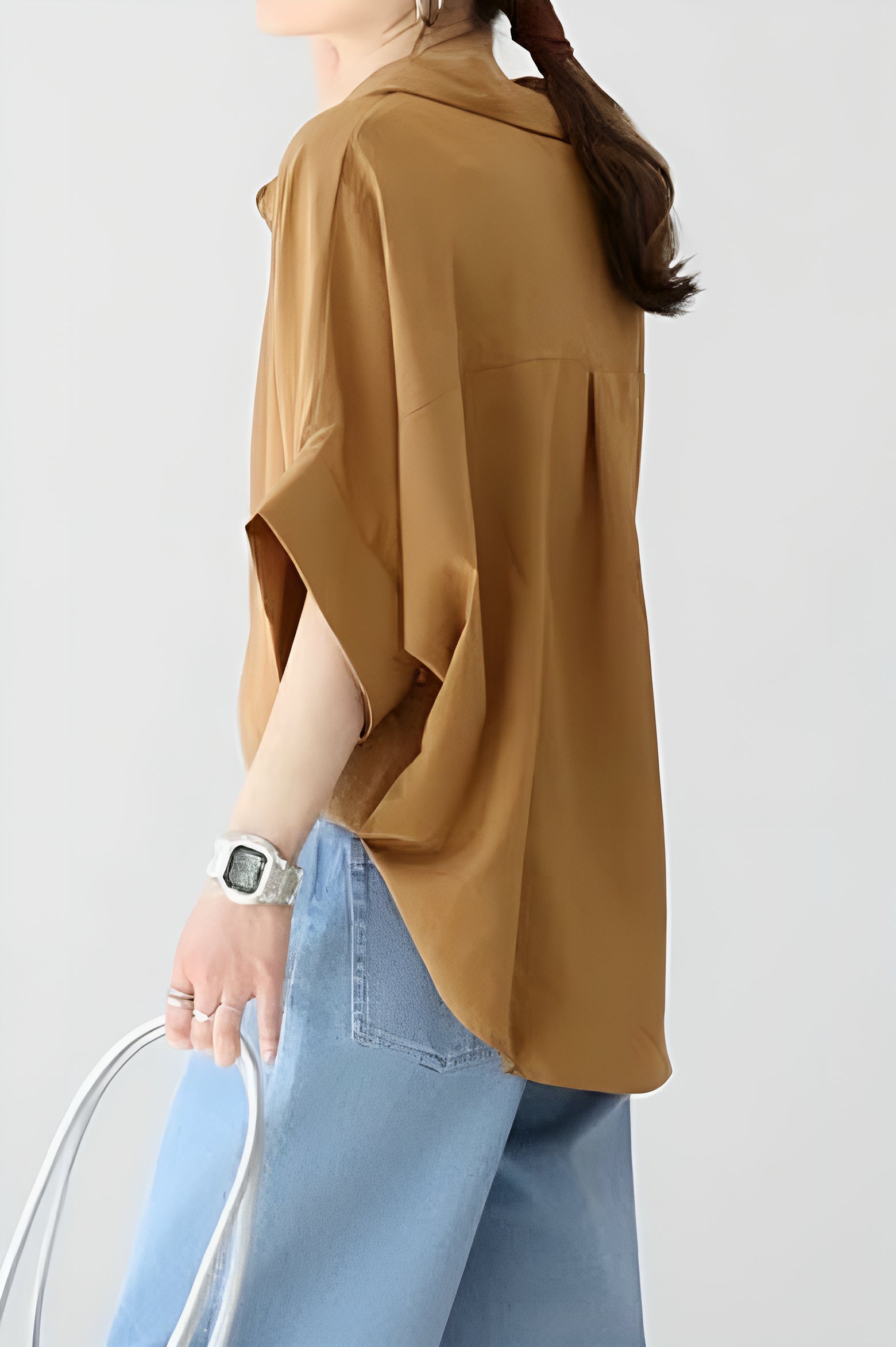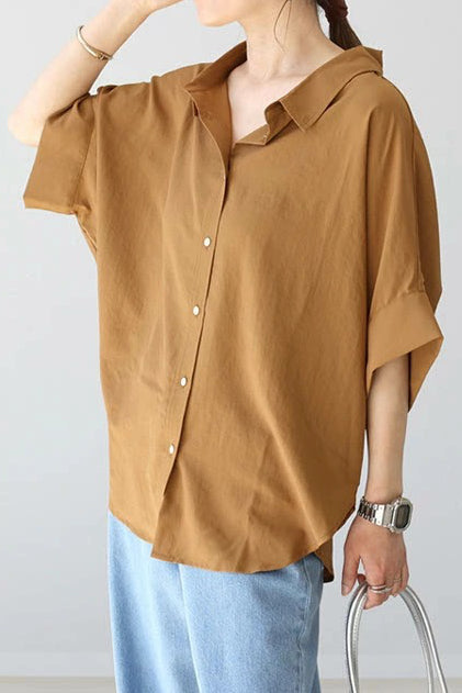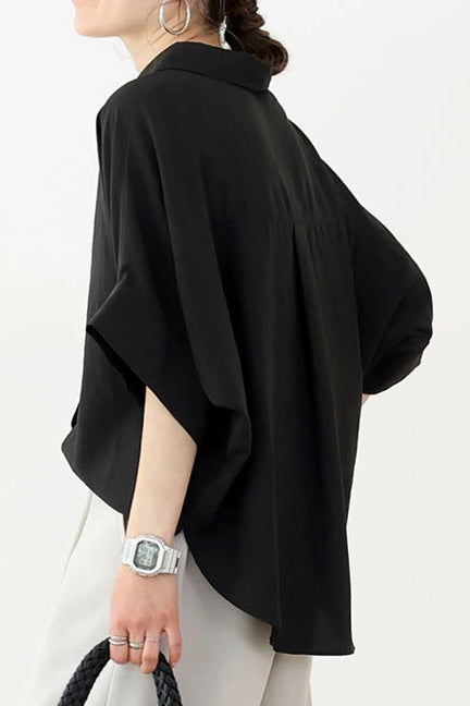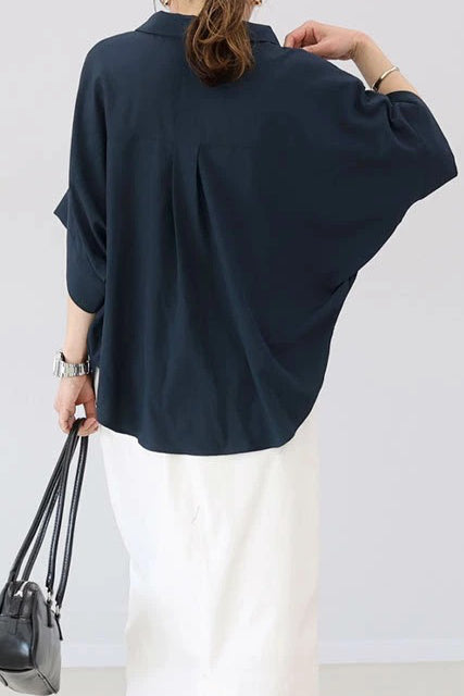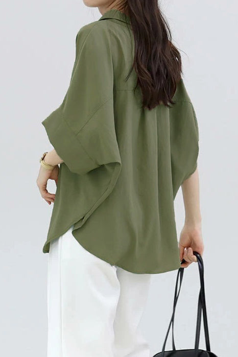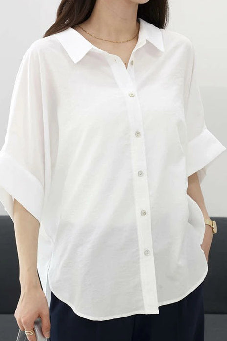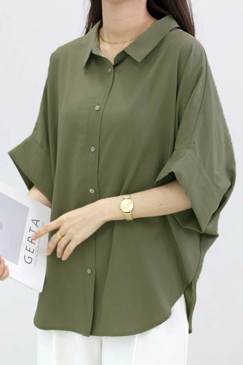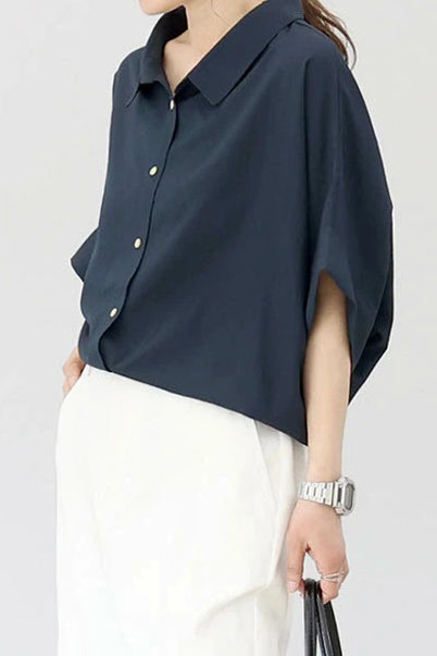 Batwing-Ärmel Revers Knopf-Down Hemd