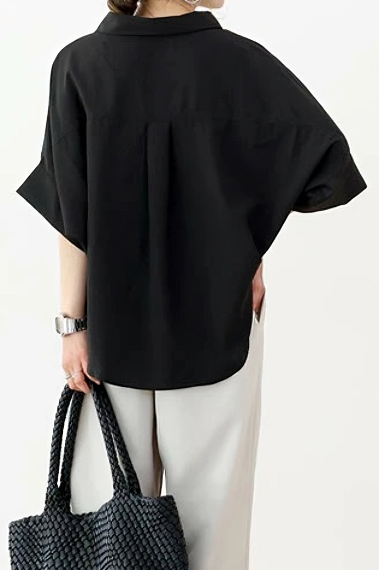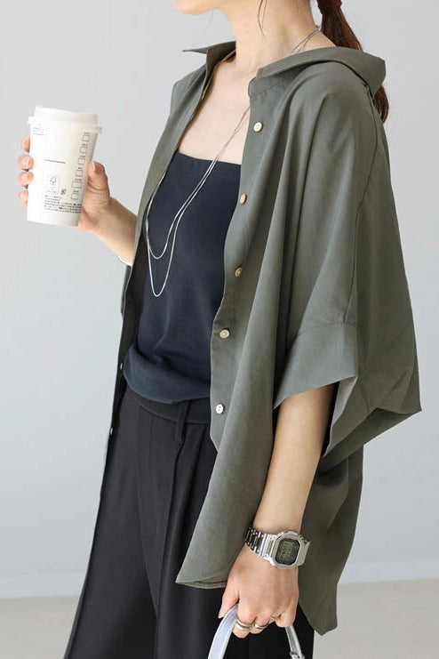 Batwing-Ärmel Revers Knopf-Down Hemd, Revers, Vollständige Knopfleiste, Abnehmbar |