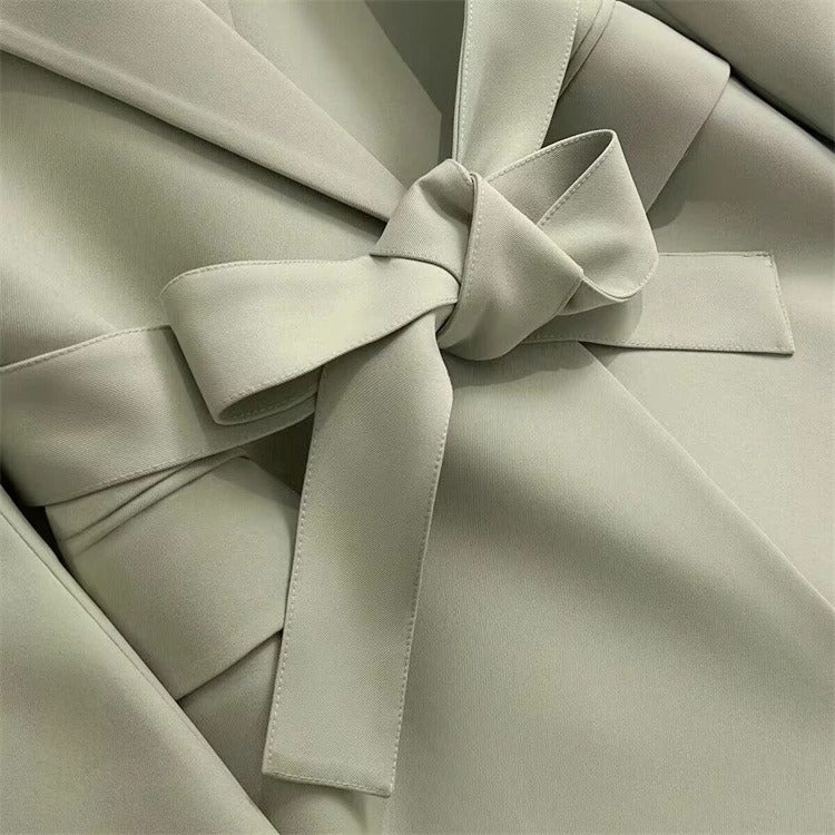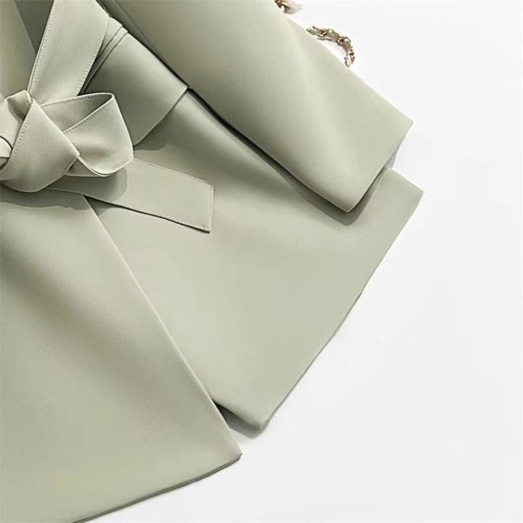 Rückhaltend im Design, eindrucksvoll in der Präsenz. Dieser skulptierte Blazer ist aus strukturiertem Stoff mit elegantem Fall gefertigt und wird mit einem selbstbindenden Gürtel vollendet, der die Taille mit stiller Autorität definiert. Gemacht für Frauen, die mit Absicht bewegen und ohne ein Wort viel sagen.