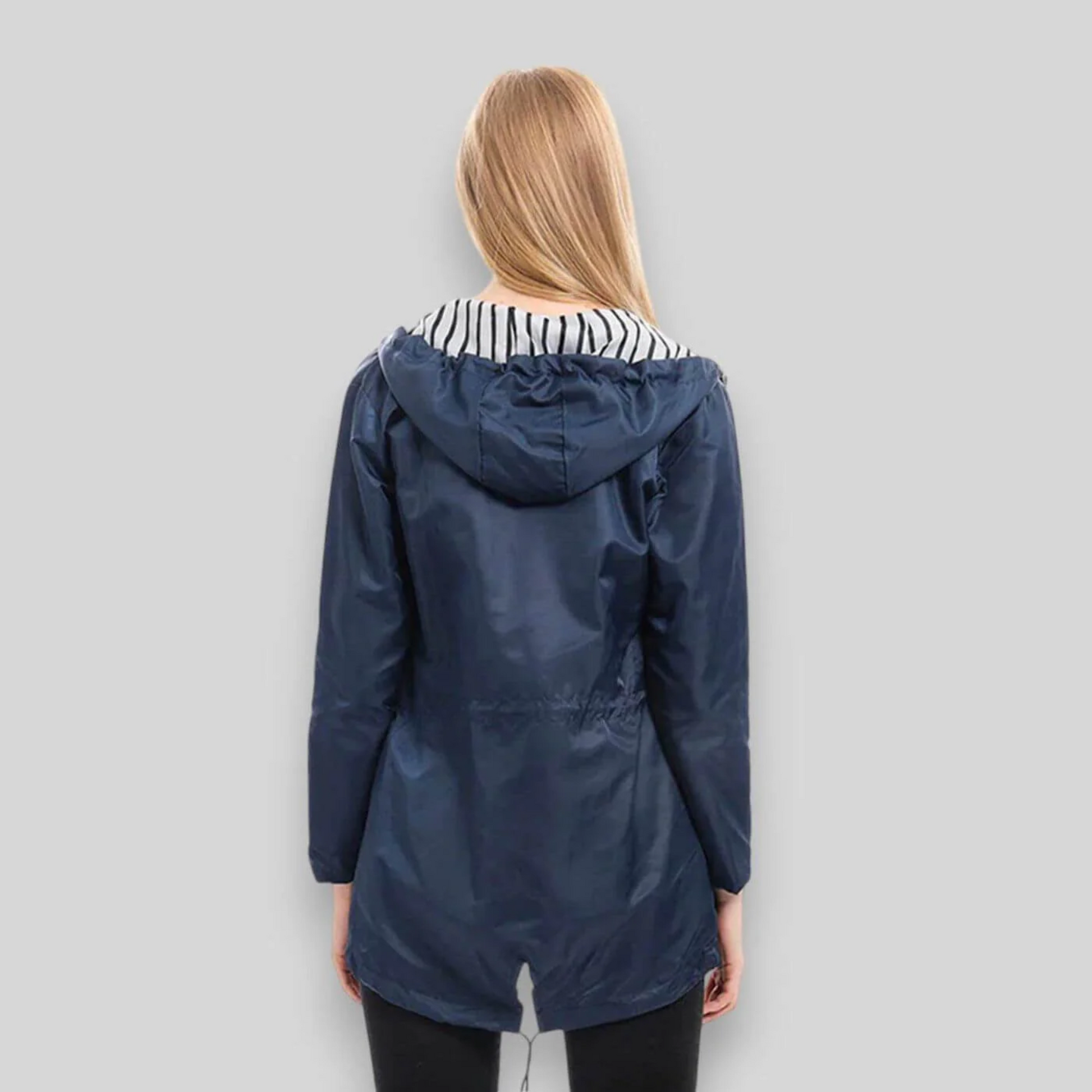 Elvina | Regenjacke – Wenn das Wetter umschlägt, aber du dich sicher und schön fühlen möchtest. Der Regen kommt plötzlich. Du frierst, wirst nass und fühlst dich unwohl. Elvina löst dieses Problem – eine leichte, wasserdichte Jacke mit skandinavischem Schnitt, designed für dich, damit du dich bei jedem Wetter wohlfühlst. Weich, atmungsaktiv und stilvoll – für die Arbeit, einen Stadtbummel oder eine Wanderung.
