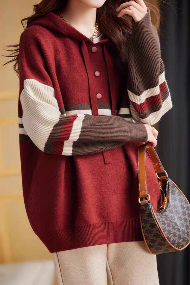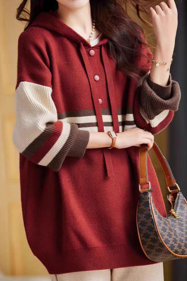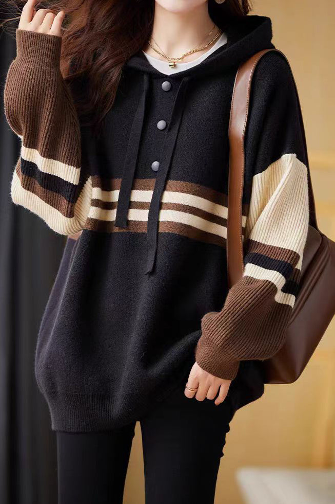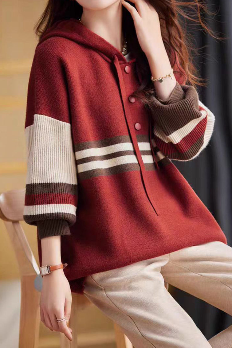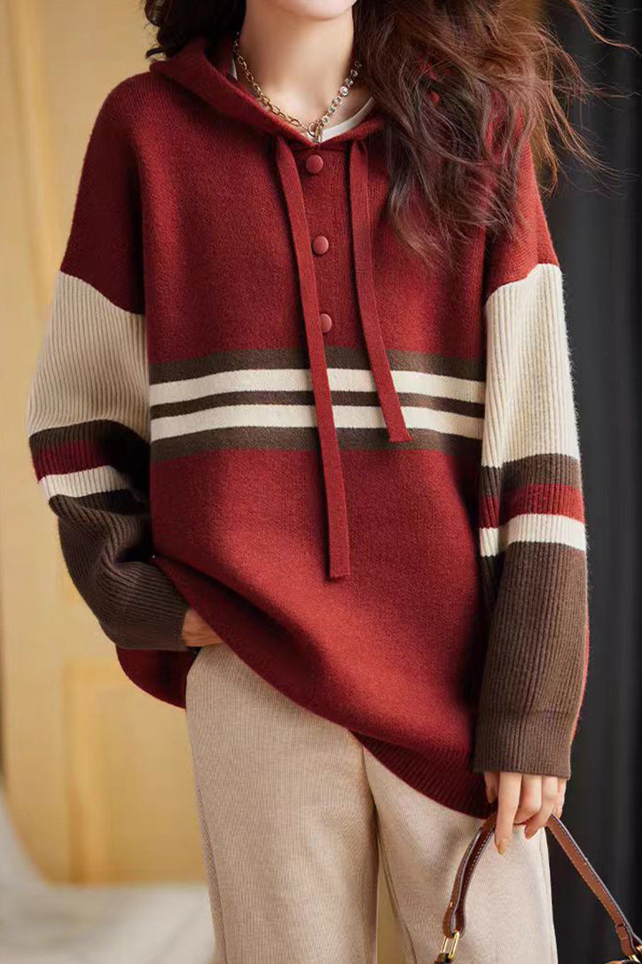 Strickoberteil mit Kapuze und langen Ärmeln, ausgestattet mit einem verstellbaren Kordelzug und einem Farbblock-Streifenmuster |