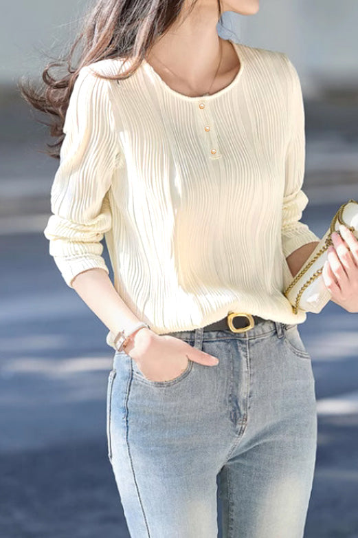 Französisches Mode Texturiertes Langarm-T-Shirt