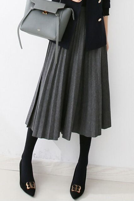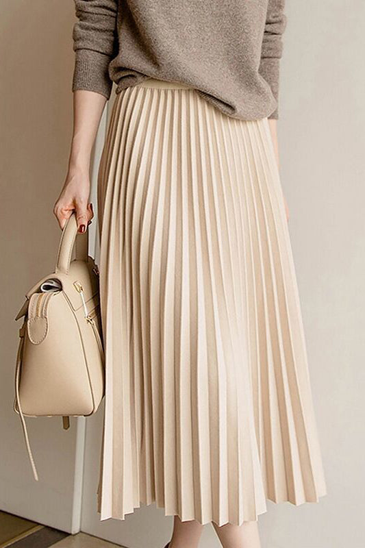 Frühherbstlicher wollener plissierter Midirock