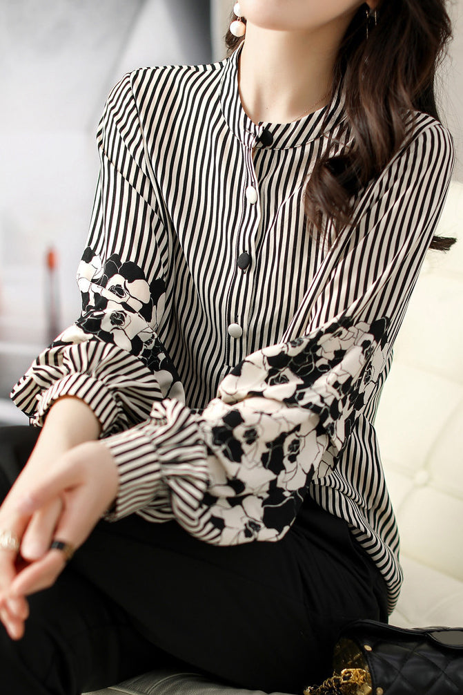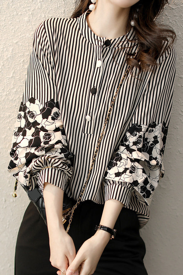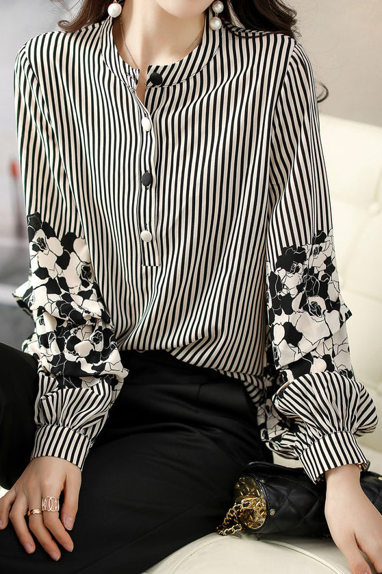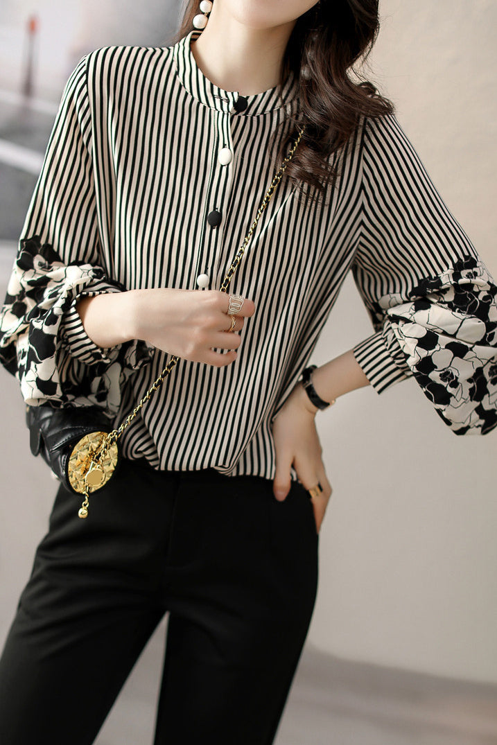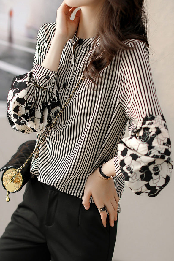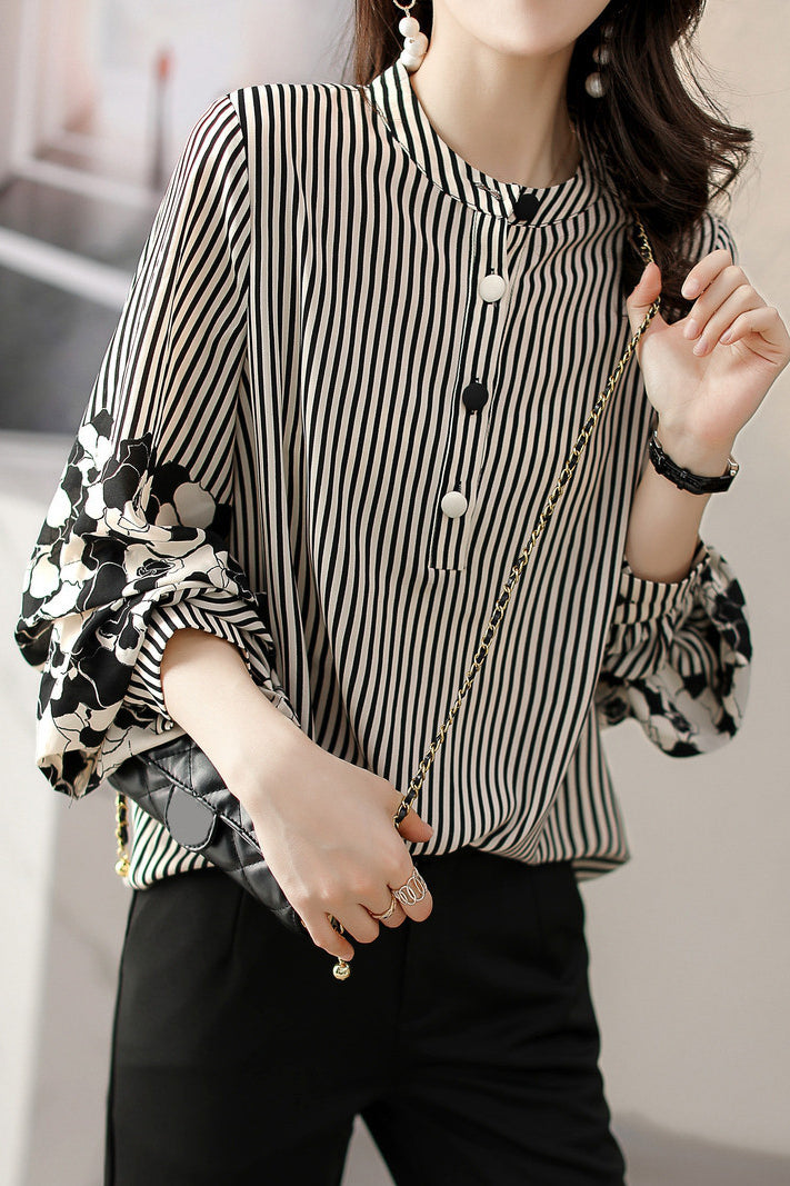 Gestreiftes Hemd mit Laternenärmeln, das schlank macht und vielseitig kombinierbar ist
