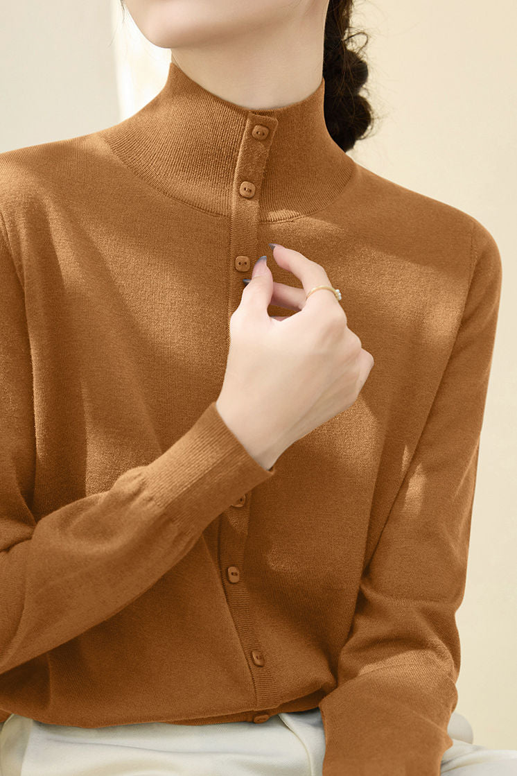 Stricktop, Halb-Hochkragen Langarm, Vorderer Knopfverschluss (Dekorativ, Nicht-funktional) |