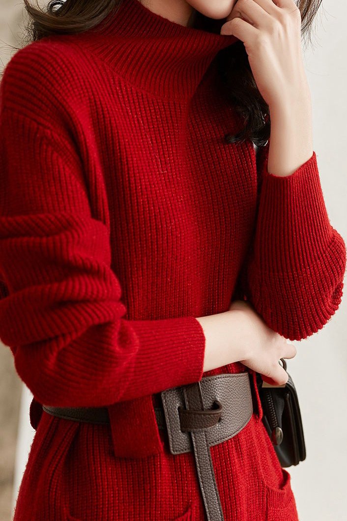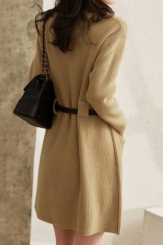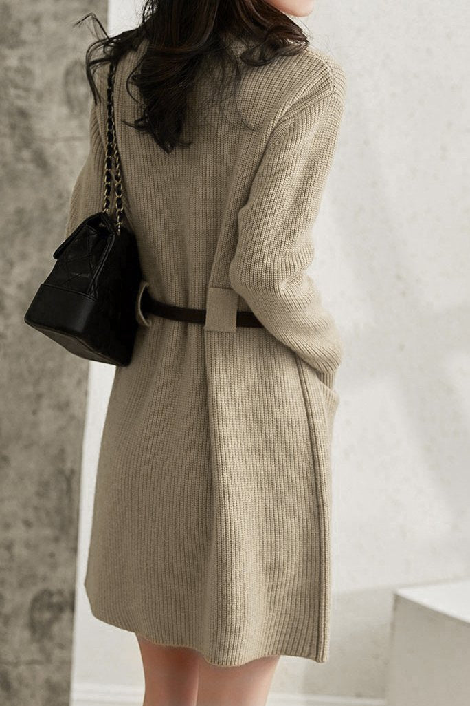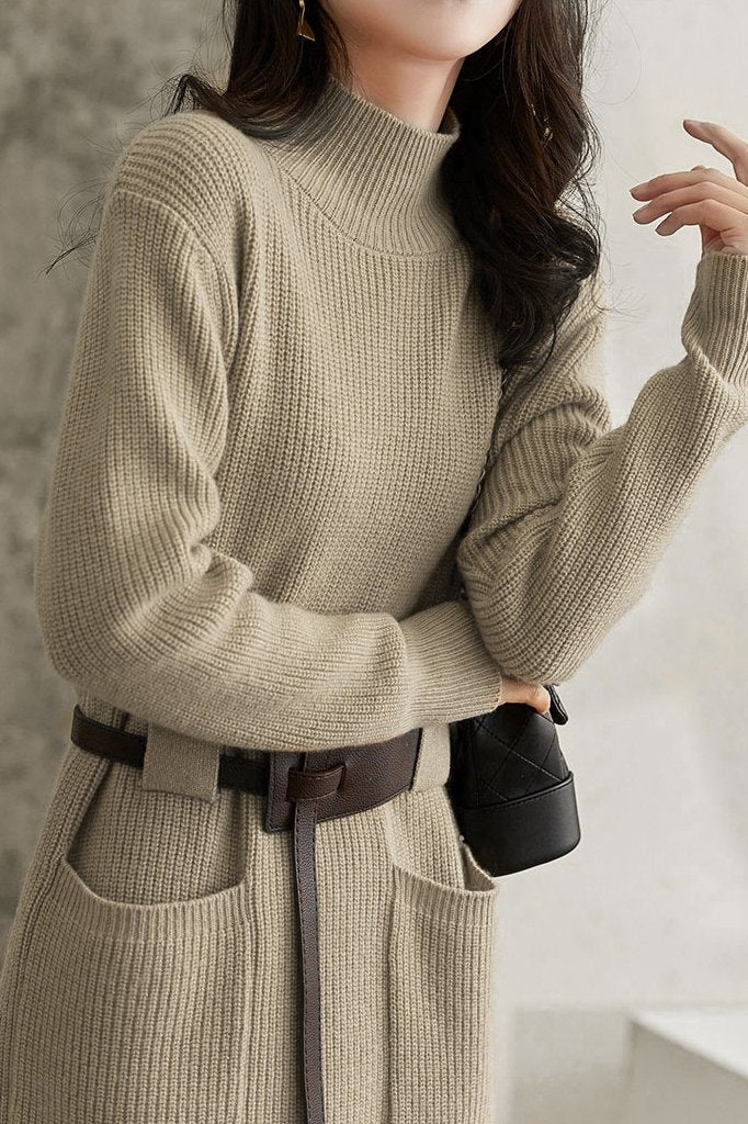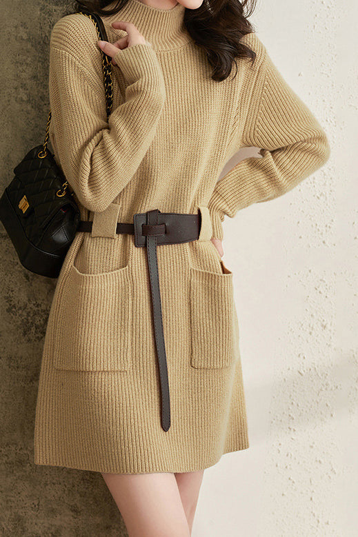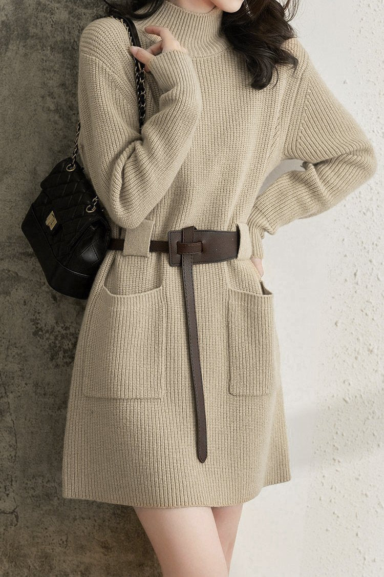Hochgeschlossenes Gürtel Strickkleid - 3 Farben erhältlich