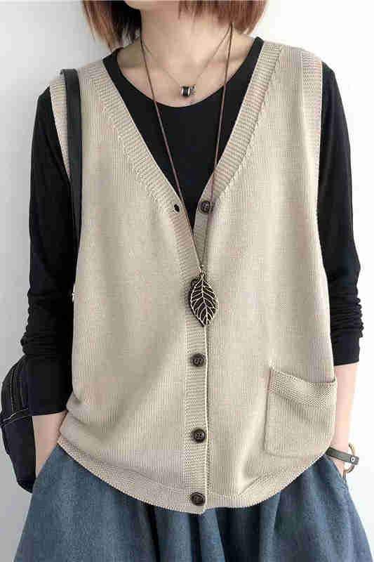 Künstlerische Retro Lockere V-Ausschnitt Strickweste