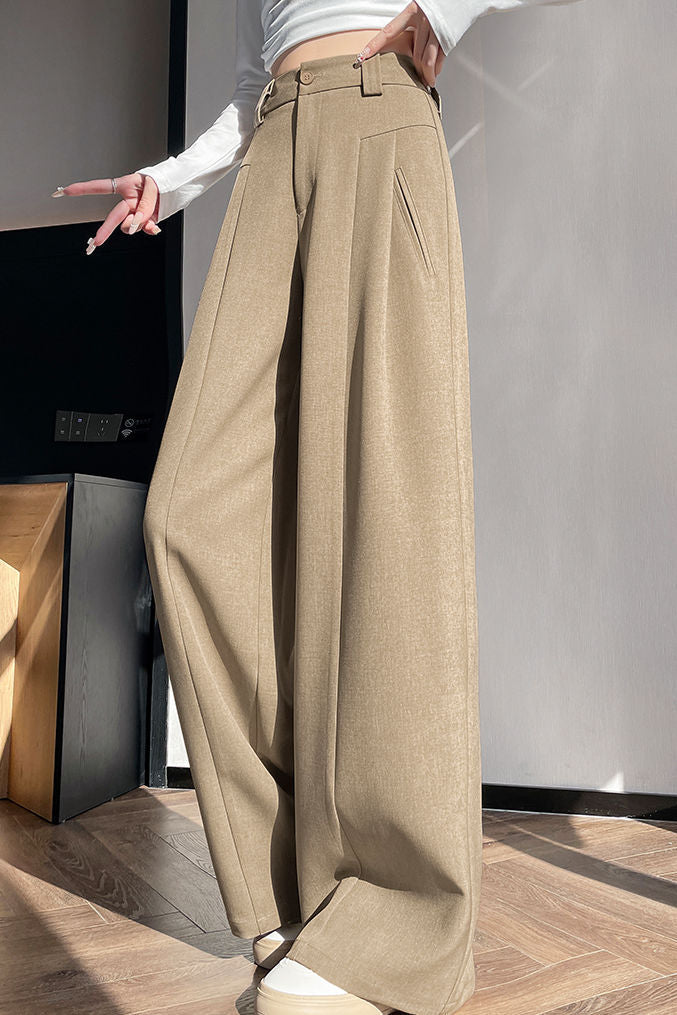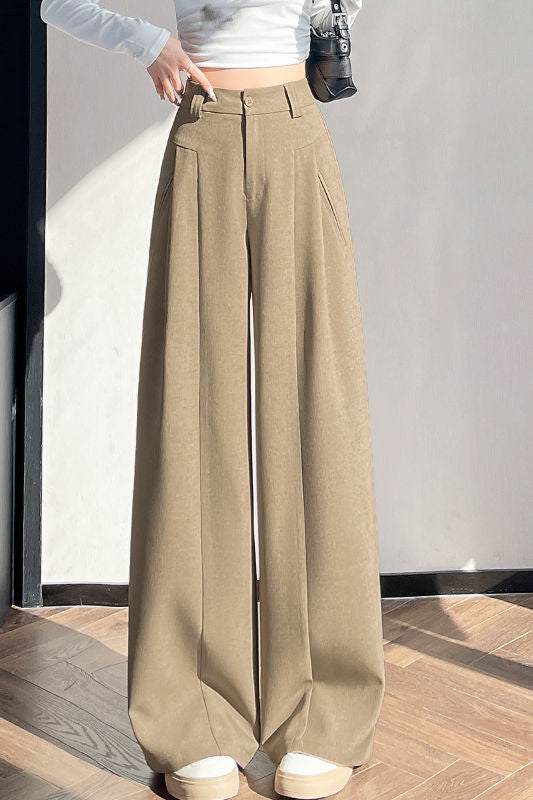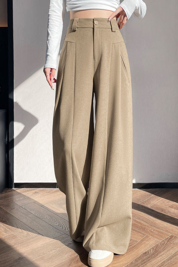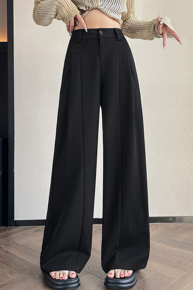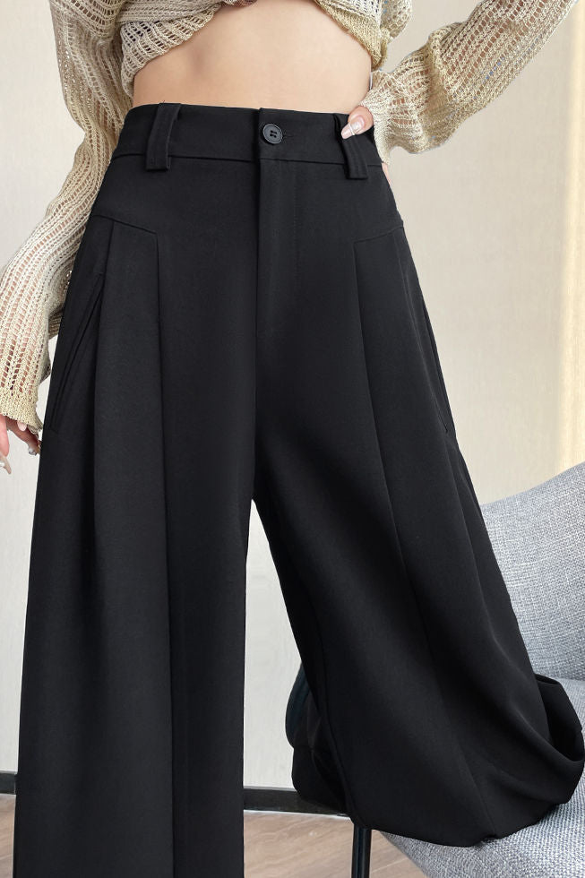 Hose, gerade weit, fließender Stoff, vorne mit zwei schrägen Schein-Einsatztaschen und plissiertem Design |