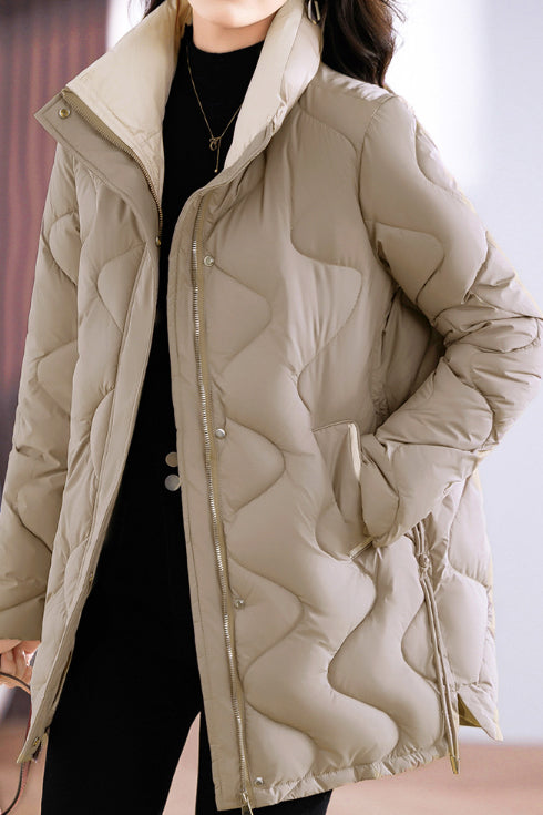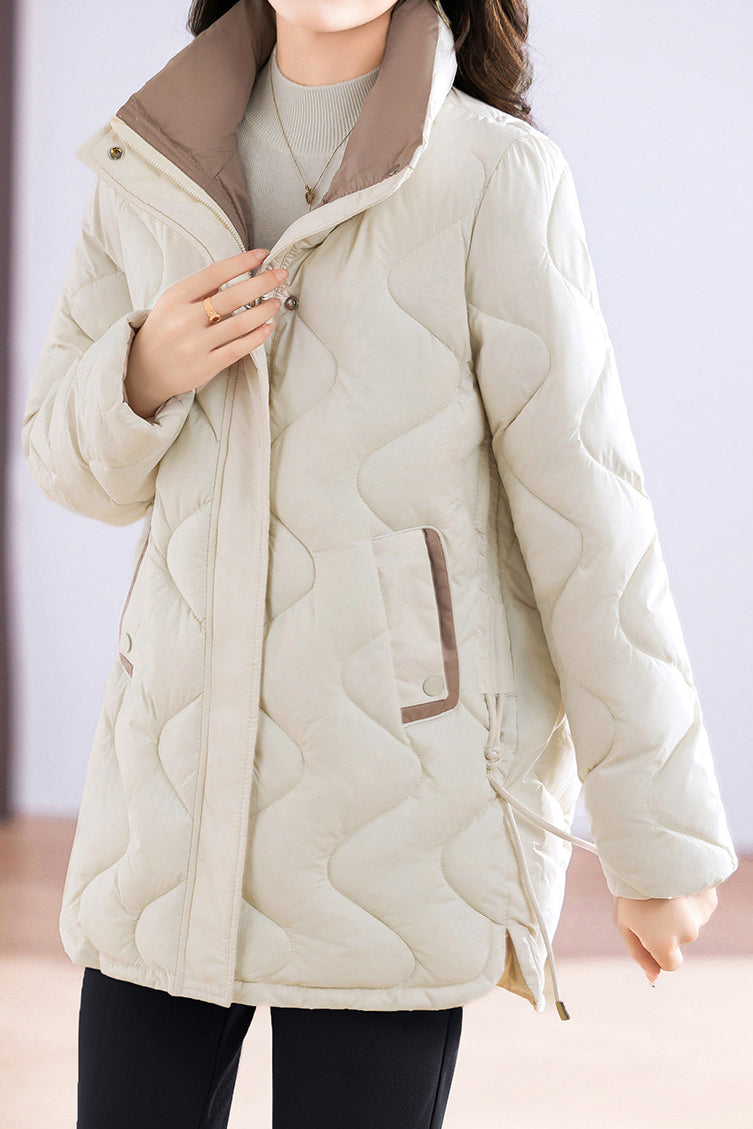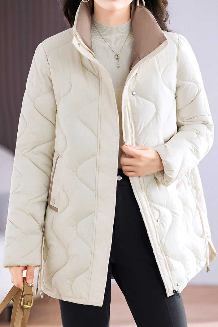 Kurze Baumwolljacke mit Kapuze und langen Ärmeln, Frontreißverschluss, verstellbare Kordelzüge auf beiden Seiten; Lange Baumwolljacke mit Stehkragen, langen Ärmeln, Frontreißverschluss und verstellbaren Kordelzügen auf beiden Seiten |
