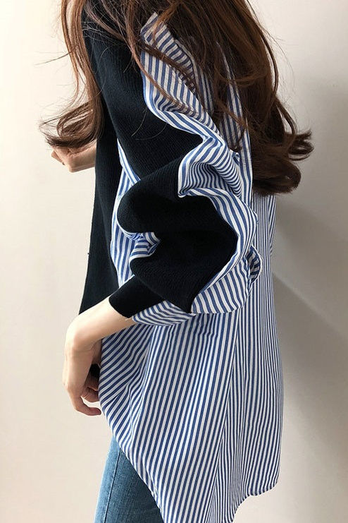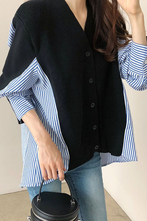 Lässiger, farbblockierter, gesplitteter gestreifter Mantel