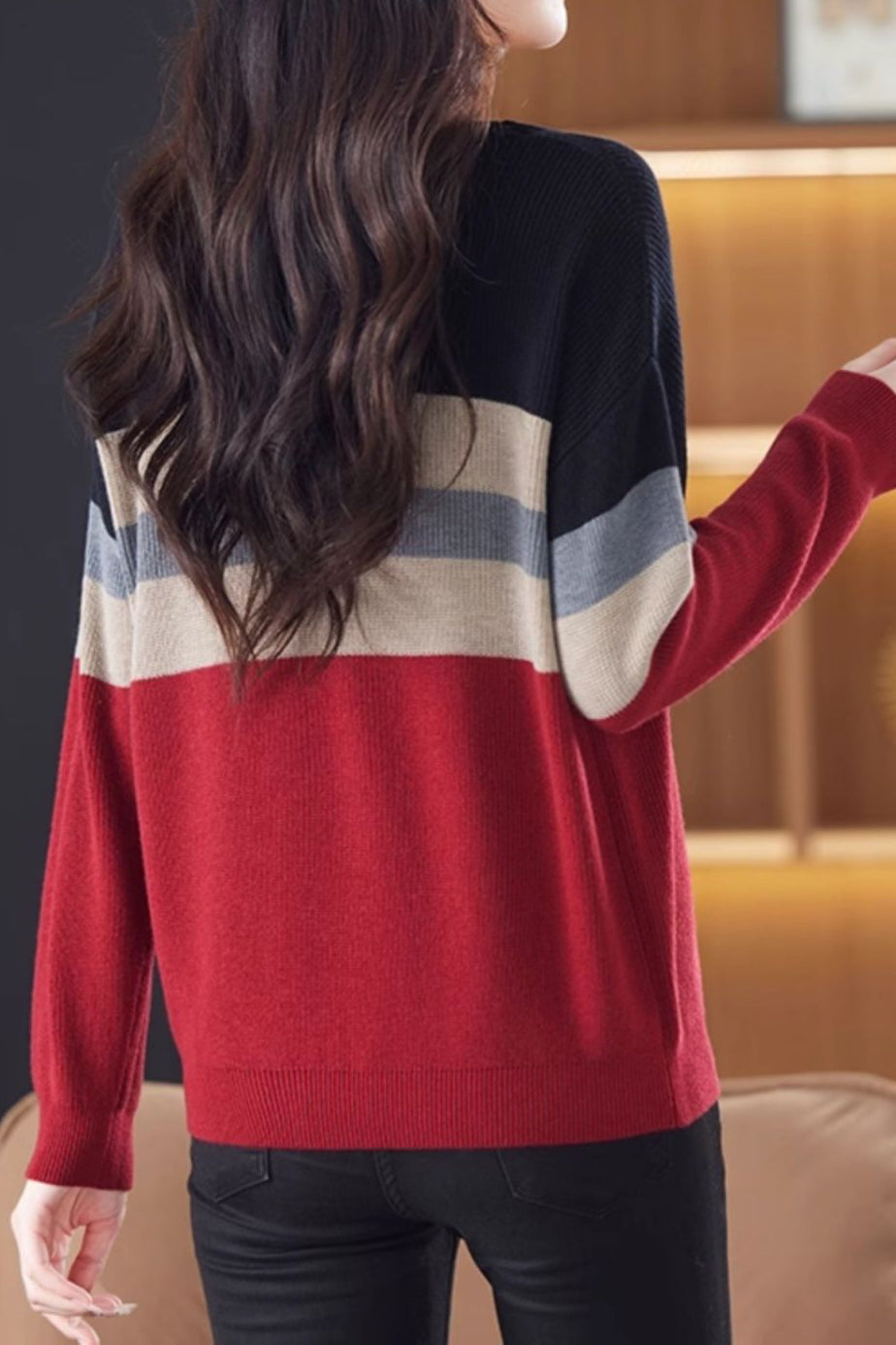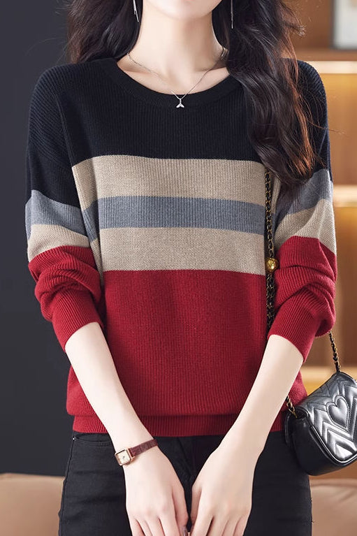 Pullover mit Farbblock-gestreiftem Design, Rundhalsausschnitt, langen Ärmeln und lockerer Passform |