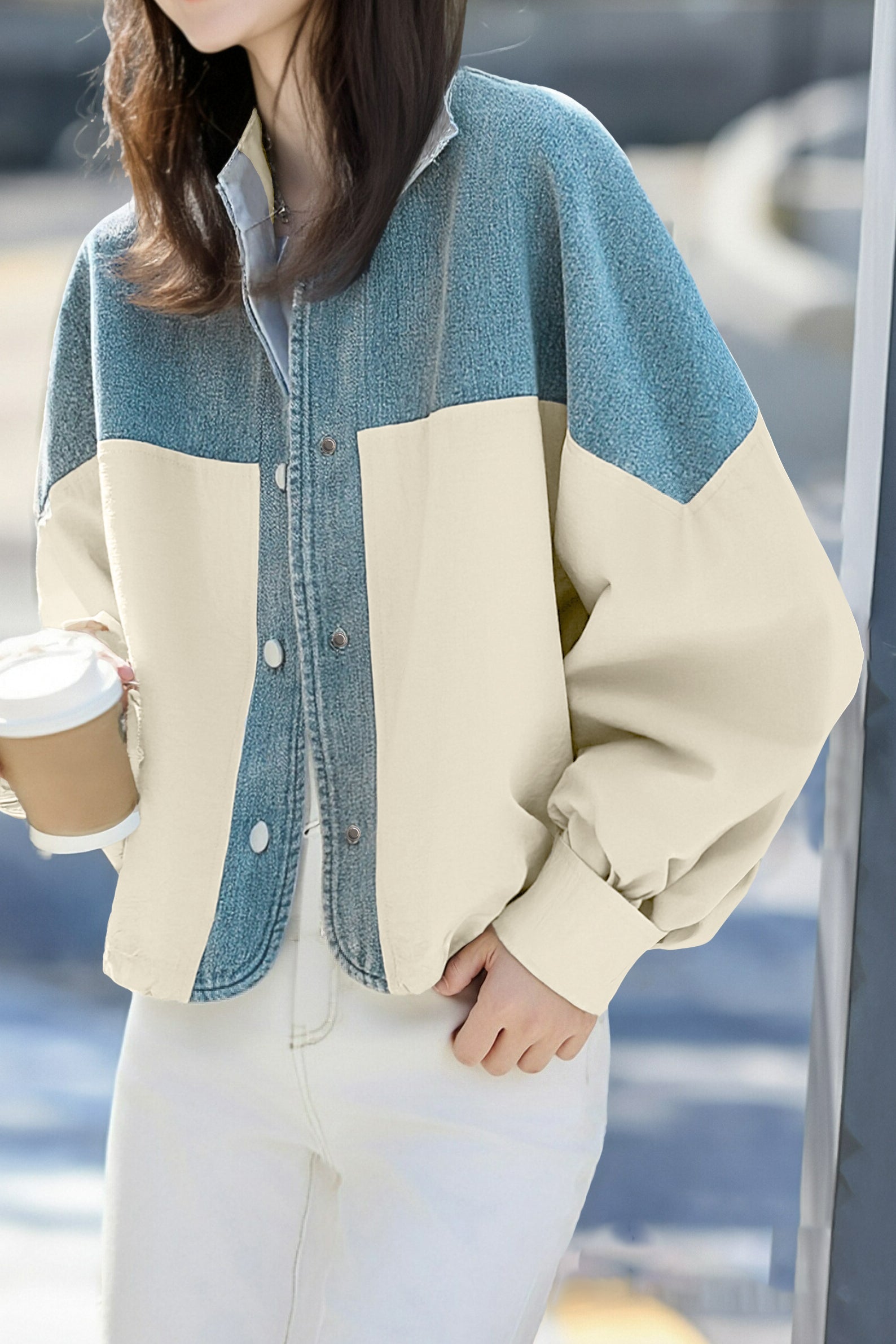 Lässiger vielseitiger Farbblock-Denim-Paneelmantel