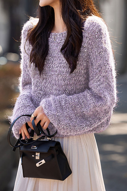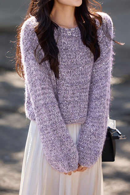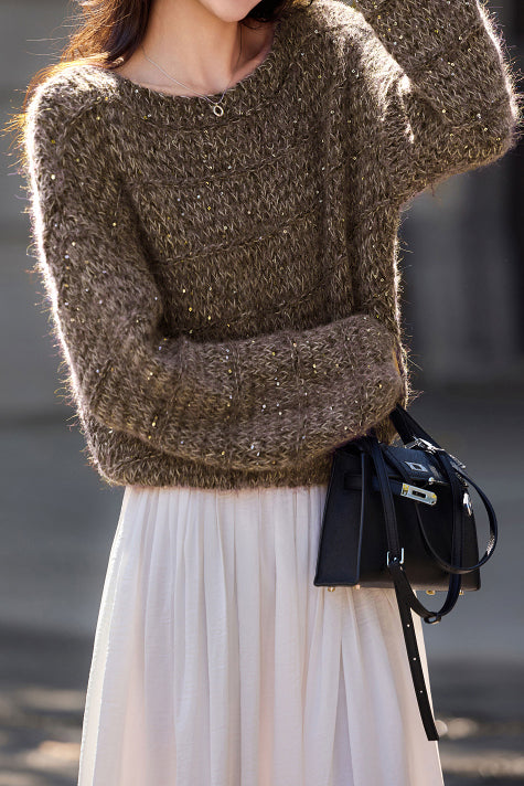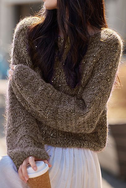 Lässiger vielseitiger Pailletten Rundhalsausschnitt Pullover