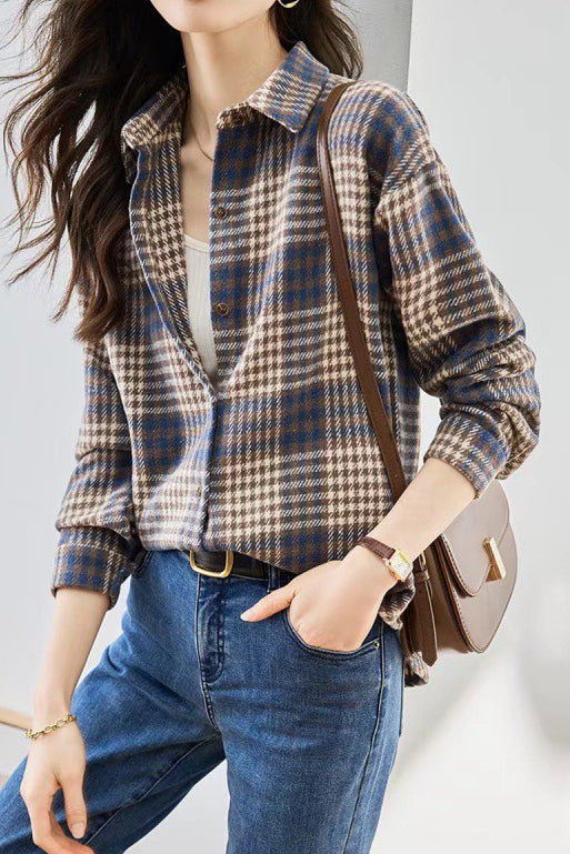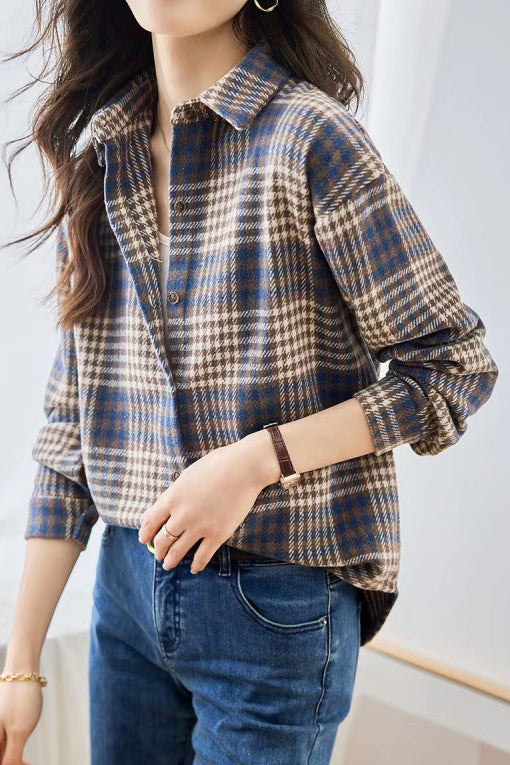 Lässiges lockeres Flanell-Karohemd mit langen Ärmeln