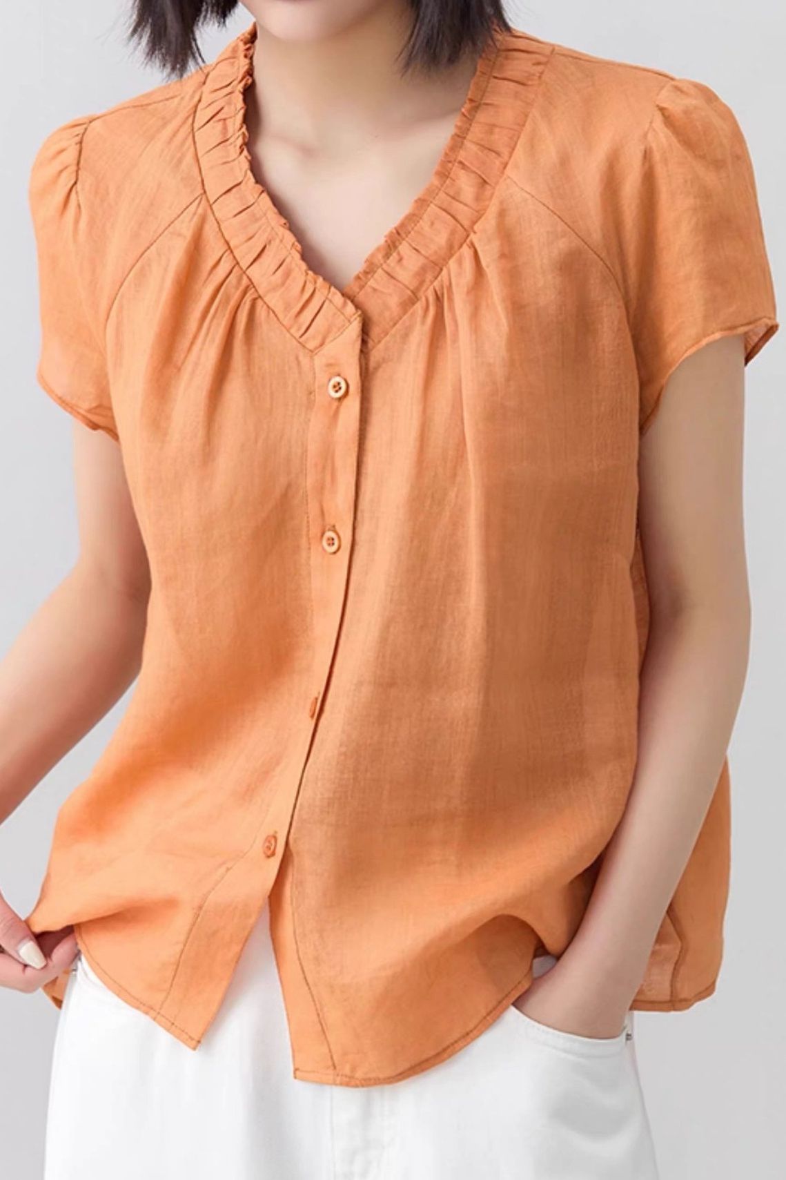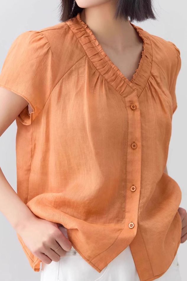 Lässiges V-Ausschnitt, gathered lockeres Hemd.