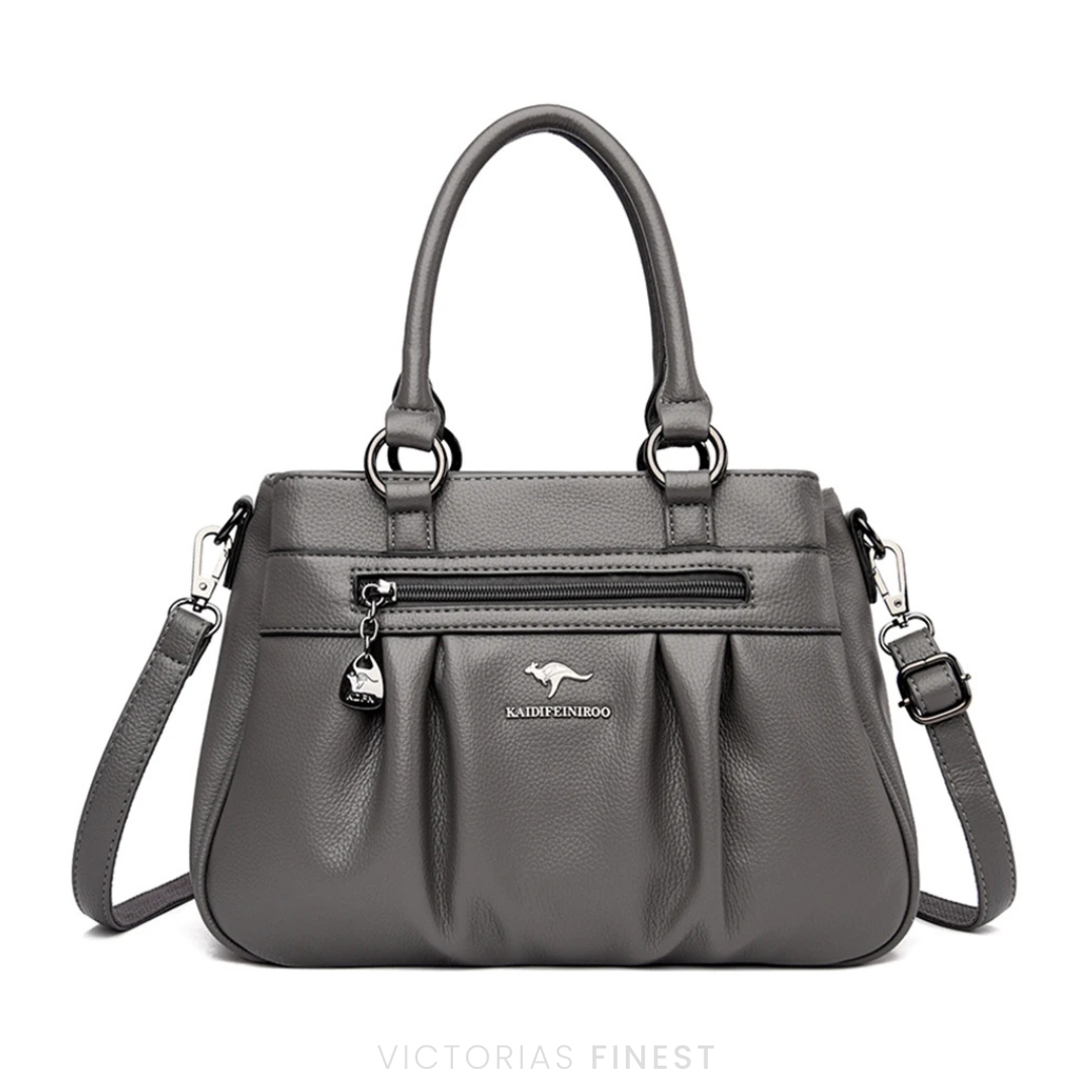 Die Lenora Weichtragetasche vereint Struktur und Weichheit in genau dem richtigen Maß. Mit ihrer sanft gerafften Form, dem glatten veganen Lederfinish und dem durchdachten Innenraum fühlt sie sich vom Moment des Anlegens wie ein zeitloser Favorit an. Ihre Silhouette ist raffiniert und zugleich großzügig, was sie perfekt macht für diejenigen, die etwas mehr mitnehmen möchten und dabei dennoch mühelos elegant aussehen wollen. Ob für die Arbeit, Besorgungen oder einen Nachmittagsausflug, sie bietet stille Zuversicht und Alltagskomfort.