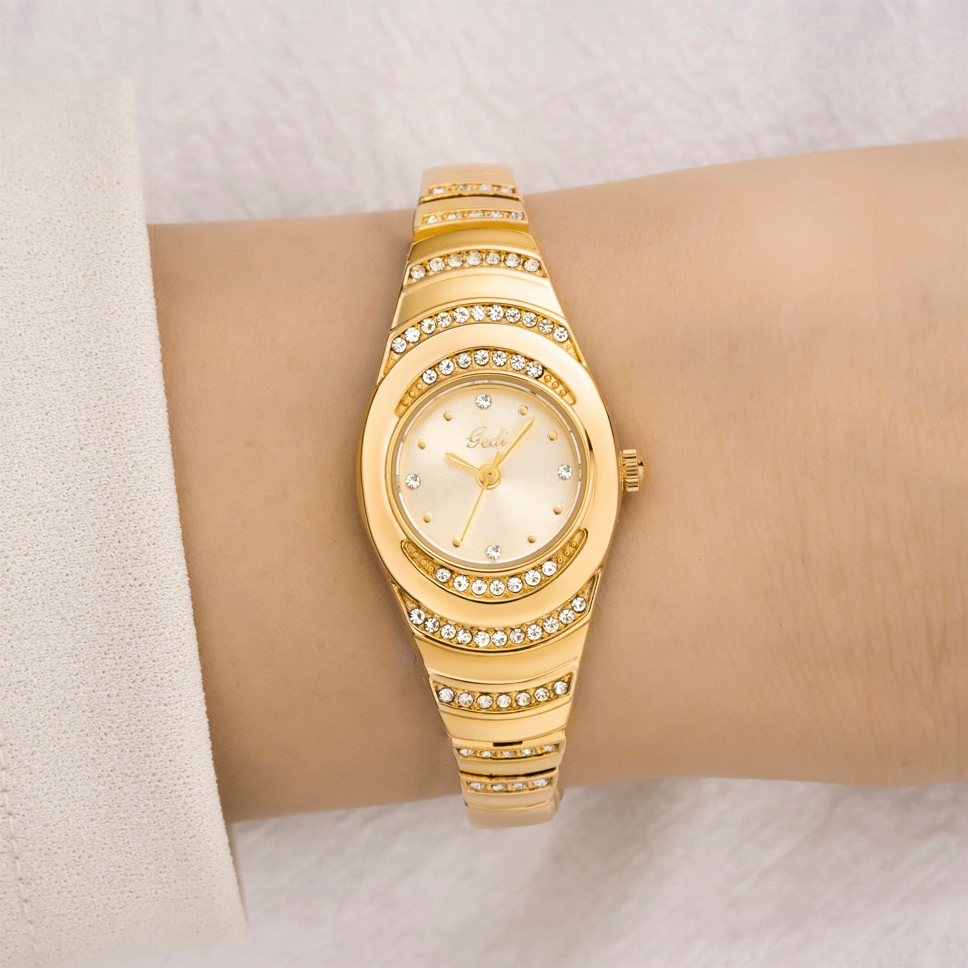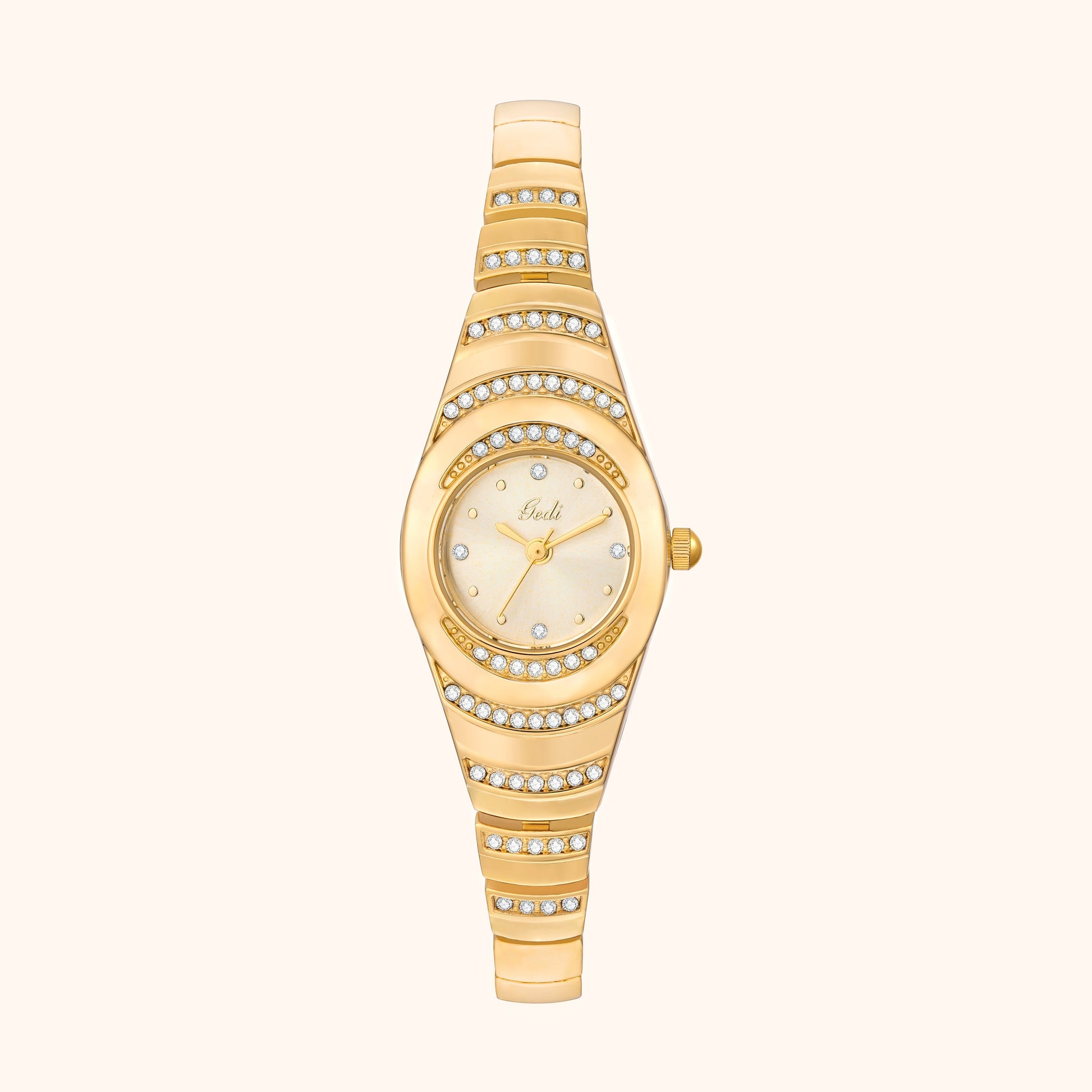 - Armband: Goldbeschichtete Legierung, verstellbar
