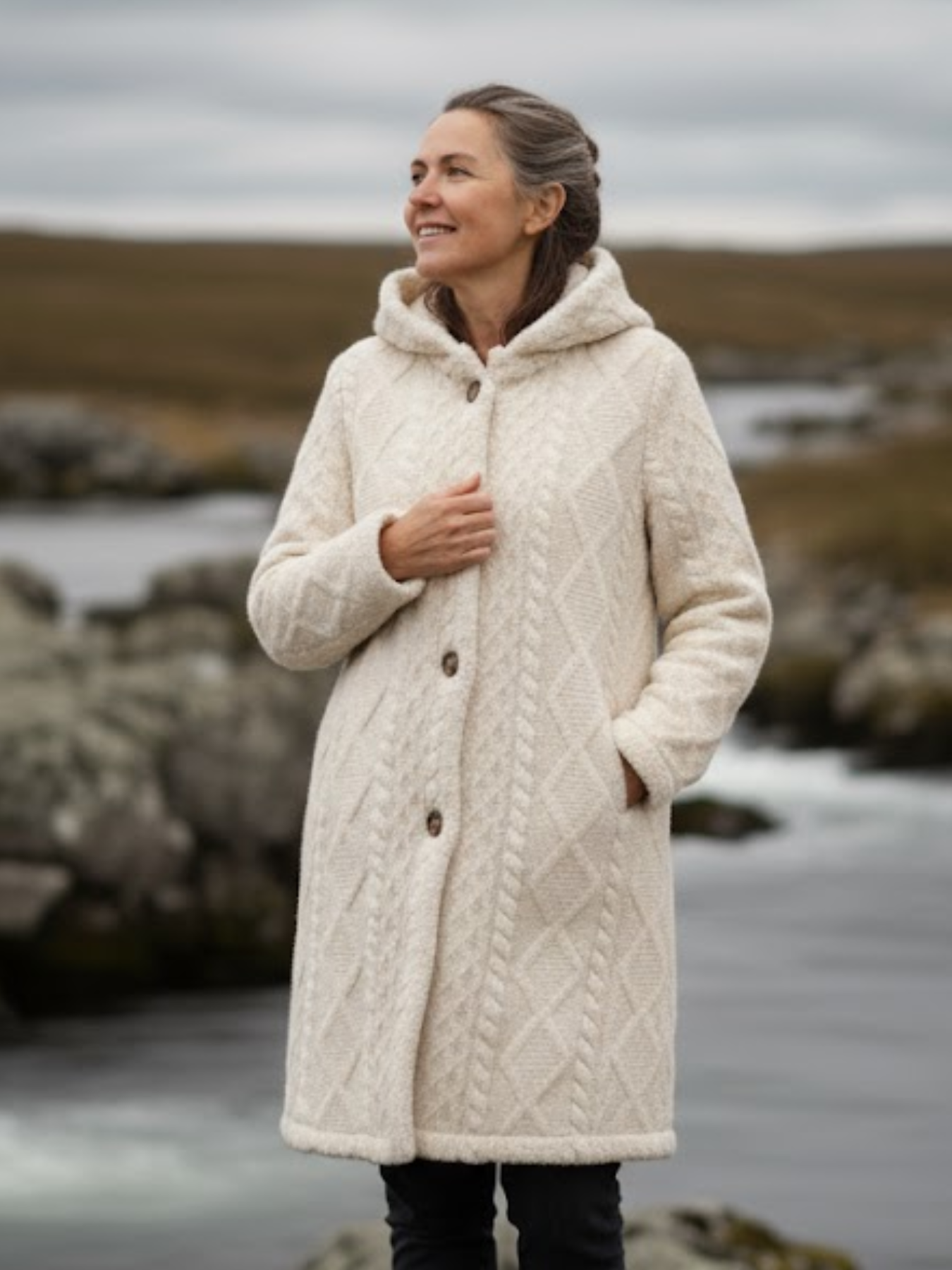 Ein exquisit gefertigter Teddy-Bären-Mantel mit einem raffinierten, diamantstrukturierten Finish und einem eleganten Kapuzen-Detail. Dieses vielseitige Stück wechselt mühelos von lässiger Tages-Eleganz zu polierter Abendgarderobe und bietet luxuriösen Komfort in samtweichem Plüschstoff. Durchdacht gestaltet mit praktischen Seitentaschen und einem klassischen Knopfverschluss vorne, kombiniert dieses maschinenwaschbare Essential zeitlose Qualität mit modernem Stil. Perfekt zum Schichten in allen Jahreszeiten.