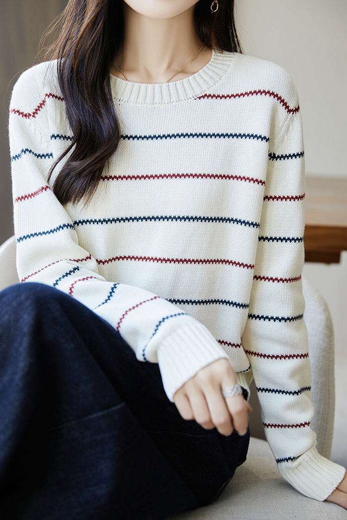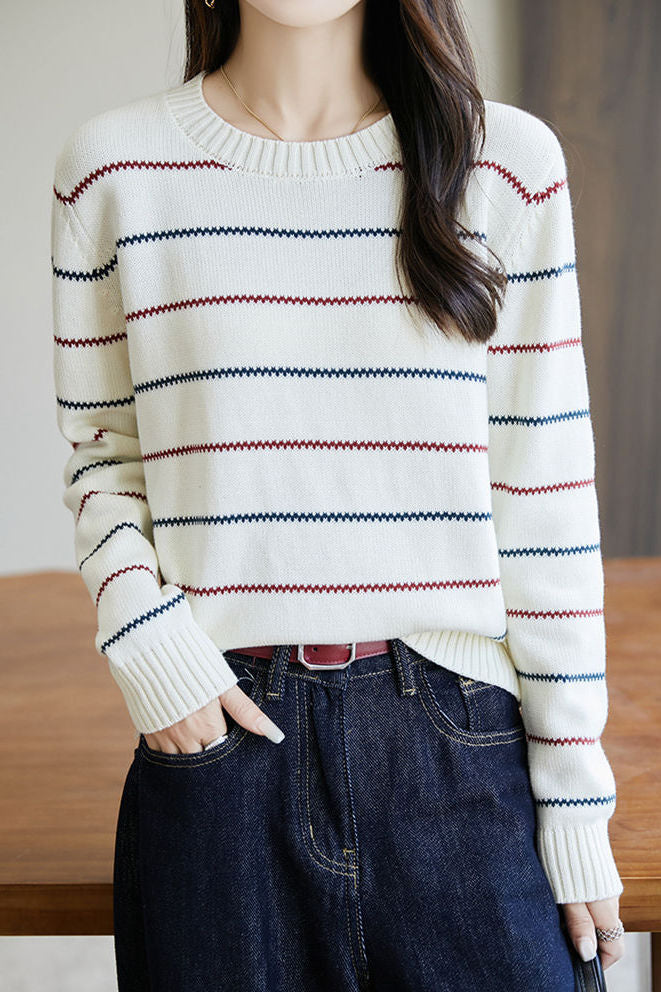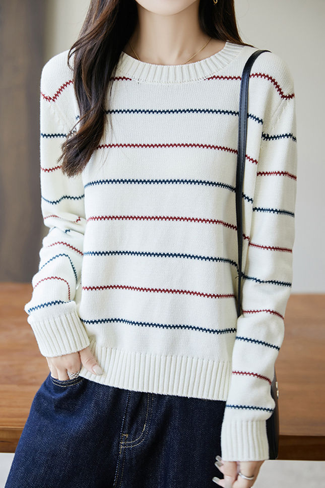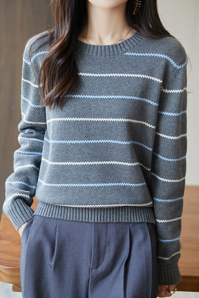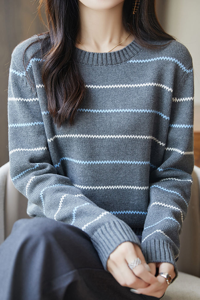 Strickoberteil, Rundhals, Lange Ärmel, Welliges Streifendesign, Lockere Passform |